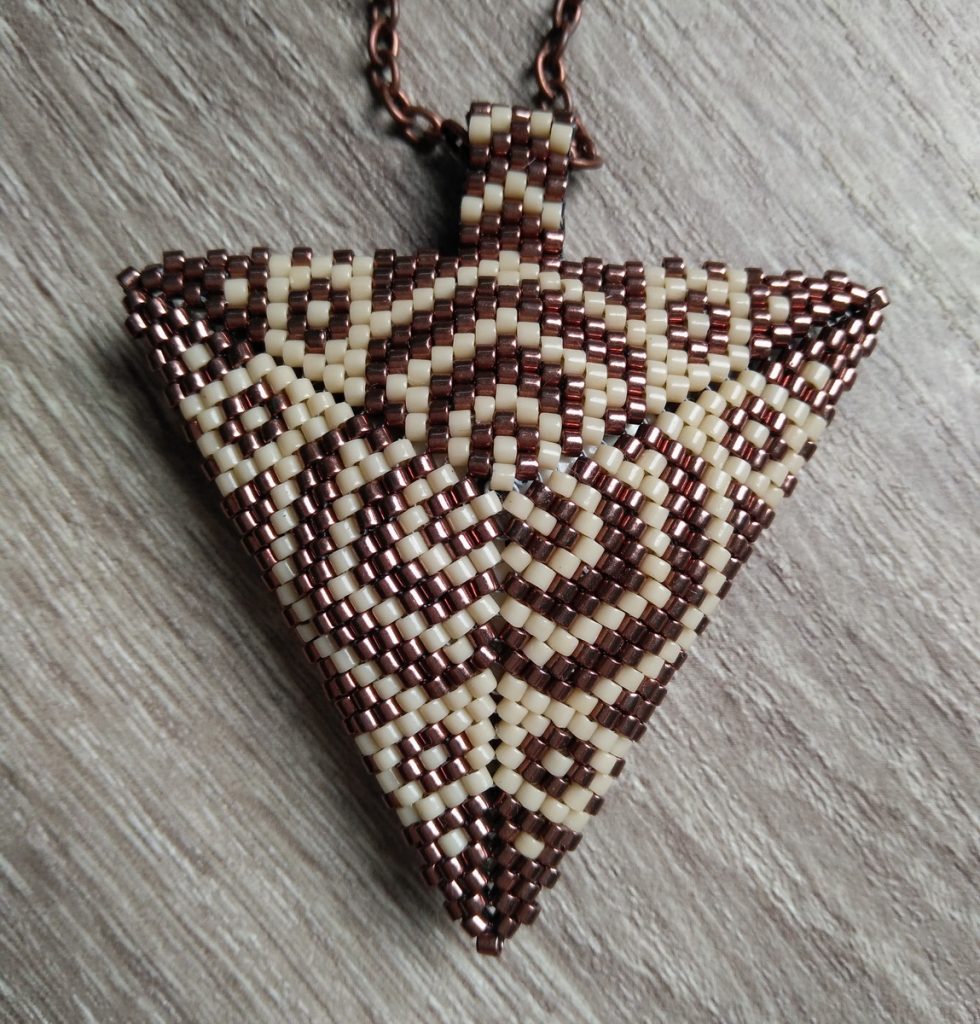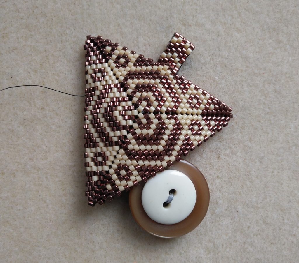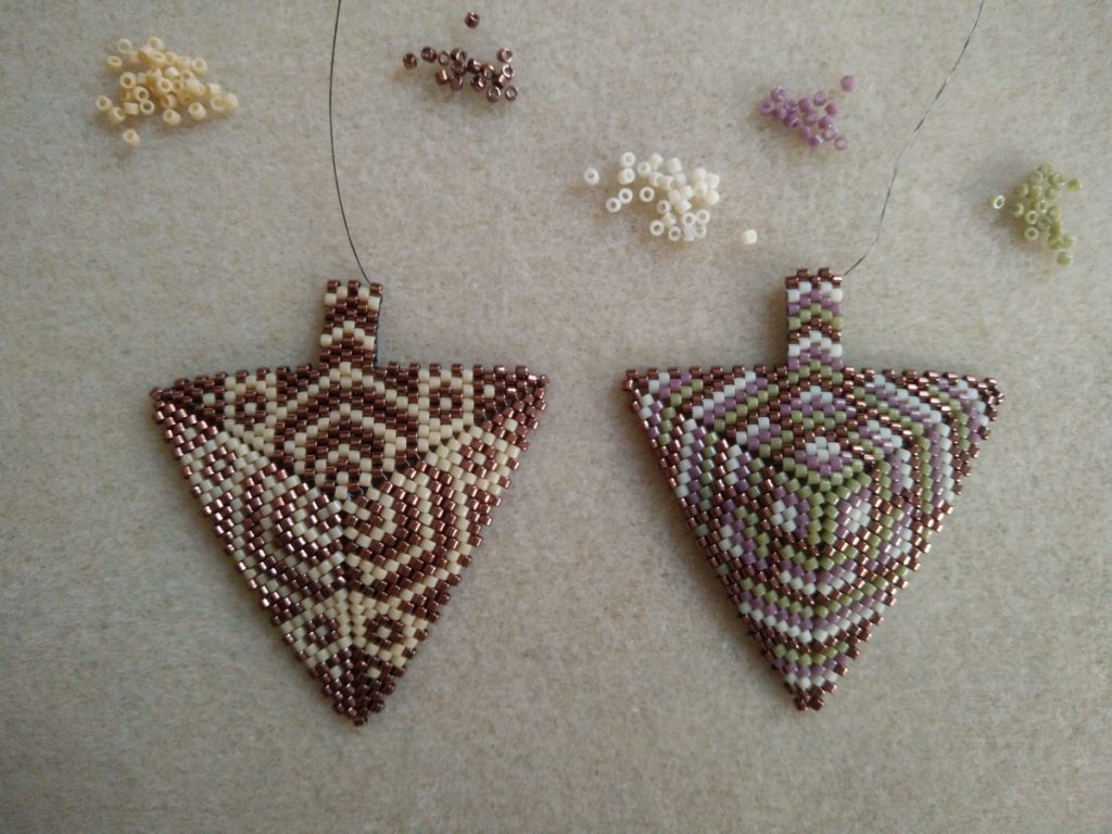 Zatim sam na oba trougla uradila još po jedan red samo sa Cimet perlicama. Osim na gornjim stranama trougla, gde sam predvidela da bude nosač priveska.
