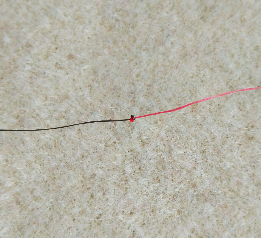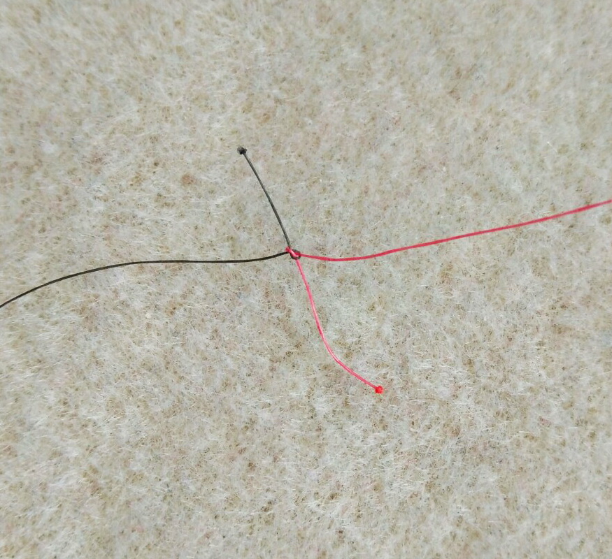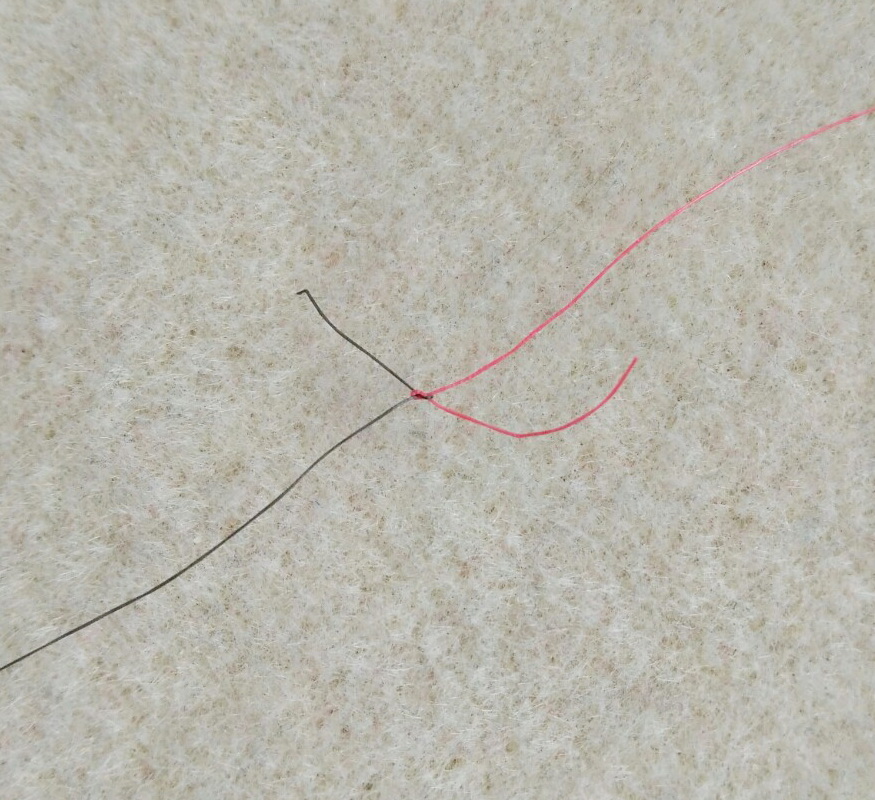 Da ne dužim previše, evo kako se to radi. Koristila sam crni i crveni konac, da bi se bolje videlo šta se dešava.