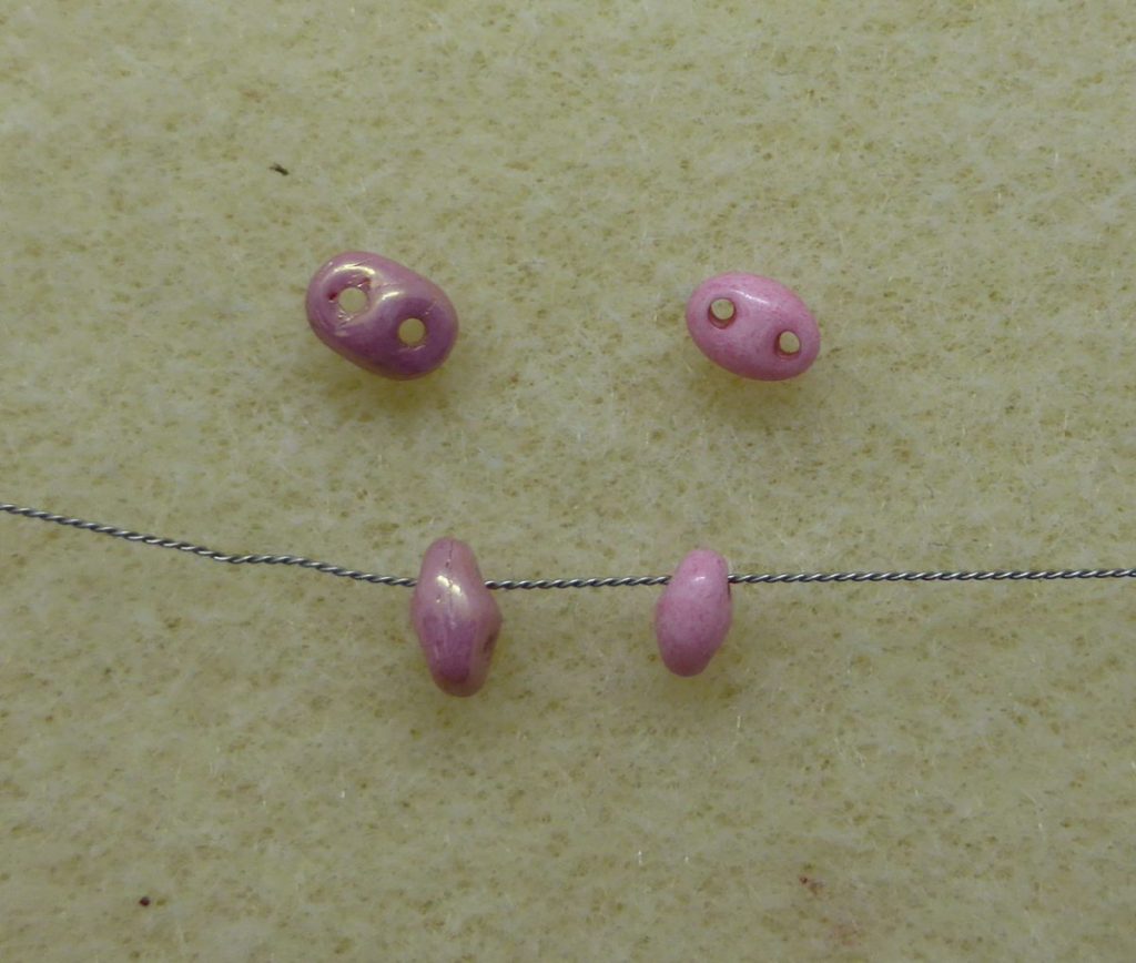 Dešava se, naročito kod nekih pastelnih obrada, da rupe na SuperDuo perlicama budu začepljene, tako da igla ne može odmah da prođe kroz njih.